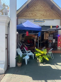 After my wonderful lunch I took myself out for a walk through the old gate and down the VERY touristy packed road. I found a Buddhist Temple that offered Thai massages etc. at half the price of anyone else. Granted it was in a large room, but most Thai massages are done fully clothed and next to each other. 100Baht=$4 Can. roughly. So, one hour here was 190 Baht = just under $8 for the hour. :) I took two treatments :) A foot massage and a Thai massage.