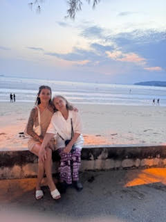 Back to the hotel where Kirsten suggested getting food at the market and watching the sunset on the beach. So we did :).Pics of us :) On the beach.