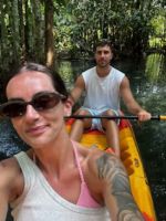 The end of Day 13 :) Pic on the left Kirsten and Igor on the scooter. Then canoeing on the water in the National Park. Then we met up, as the upper pics show :)